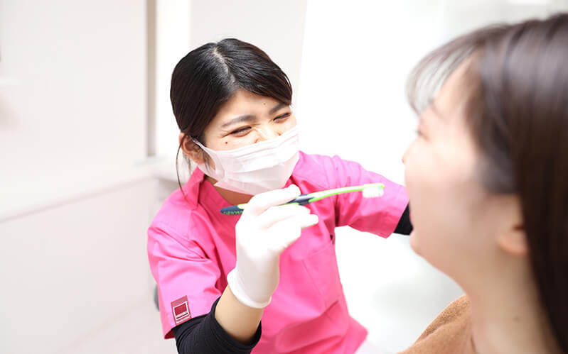 当院では基本として、同じスタッフが診療を担当する「衛生士担当制」を採用しております。患者さんも気軽に相談しやすく、一人ひとりに合わせた予防プログラムをご提案することが可能です。